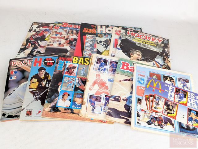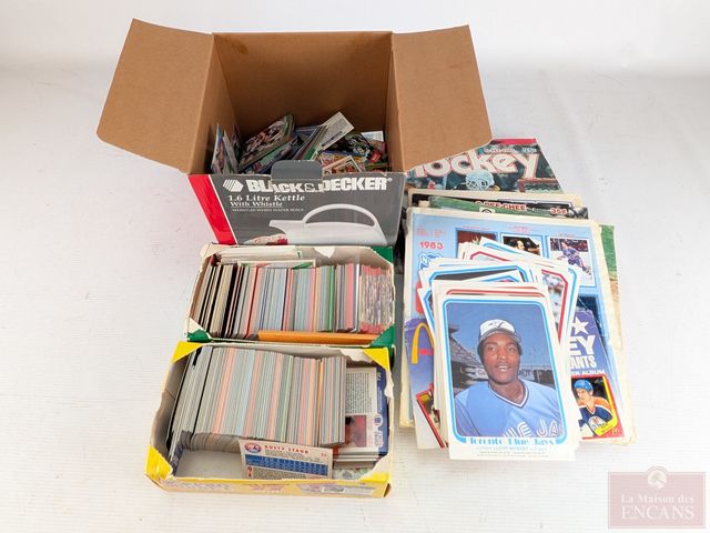 Lot # 166 - Lot sportif vintage, comprenant cartes de sport, dont cartes de football, photographies de joueurs de baseball, dont Expos de Montréal, magazines et autres SOLD