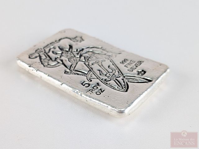 Lot # 216 - Lingot de cinq onces d'argent pur 999 Monarch, sans taxes SOLD