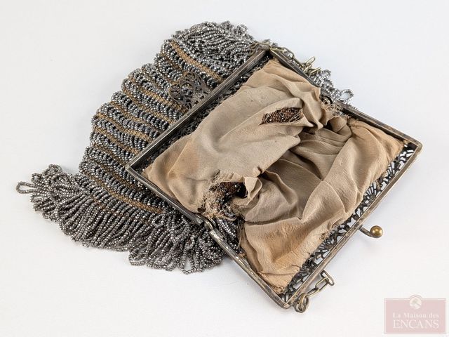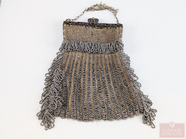 Lot # 189 - Sac de soirée art-nouveau en métal et tissu tressé, datant des années 1920 et mesurant 7.5 pouces de hauteur SOLD