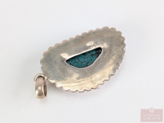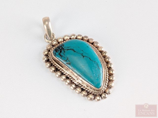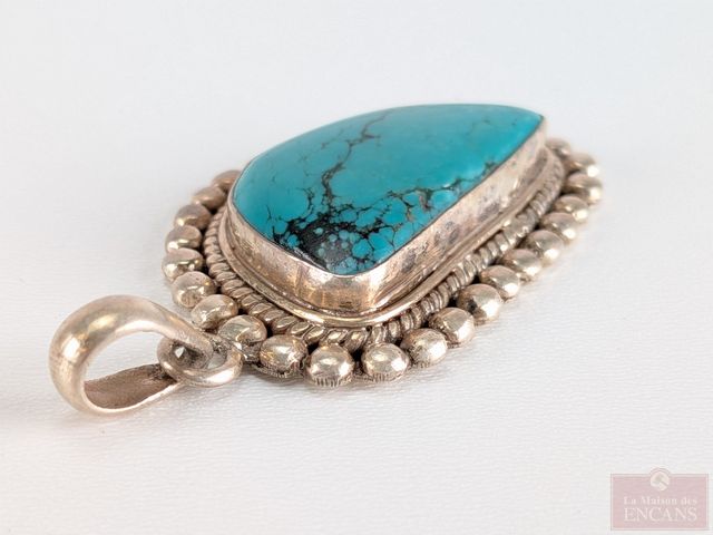 Lot # 198 - Pendentif en argent serti d'une pierre, mesurant 2 pouces de longueur SOLD