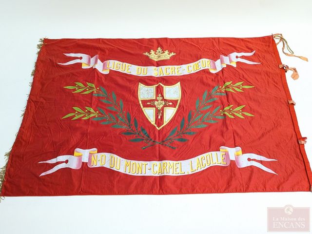 Lot # 126 - Drapeau sacré-cœur peint à la main, mesurant 48x66 pouces SOLD
