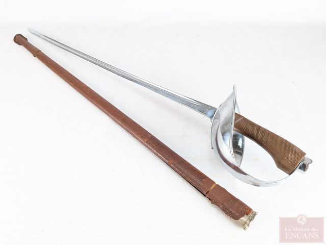 Lot # 154 - Épée d'officier de la cavalerie datant de la première guerre mondiale, modèle 1908, avec son fourreau en cuir, mesurant 40 pouces de longueur au total SOLD