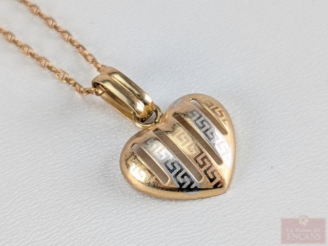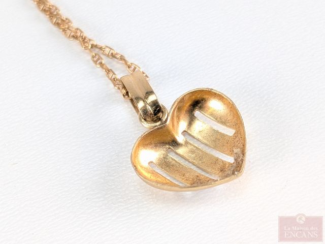 Lot # 202 - Chaine et pendentif en or 10k, la chaine mesurant 16 pouces de longueur et le pendentif mesurant 0.75 pouces SOLD