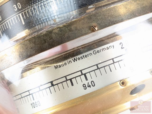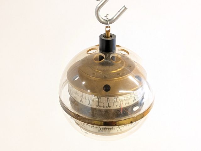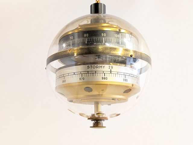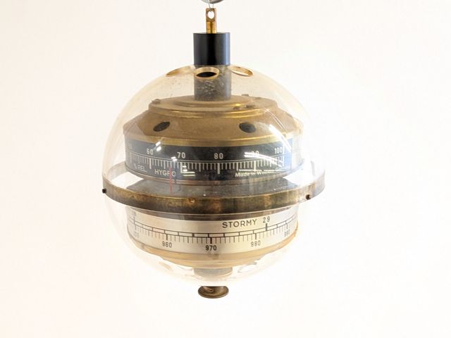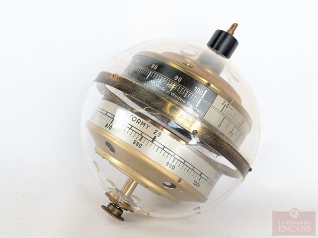 Lot # 123 - Baromètre "space age" West-Germany en lucite et laiton, mesurant 6.5 pouces de hauteur, fonctionnel SOLD