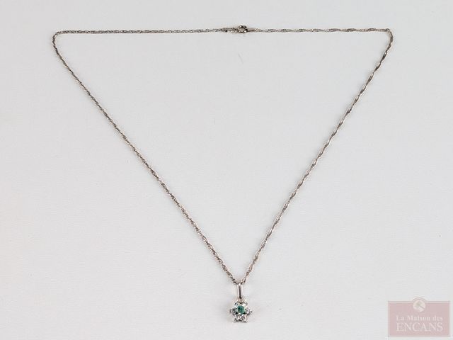 Lot # 207 - Chaine et pendentif en argent serti d'une émeraude de Colombie et de multiples pierres, la chaine mesurant 17.5 pouces de longueur CANCELLED