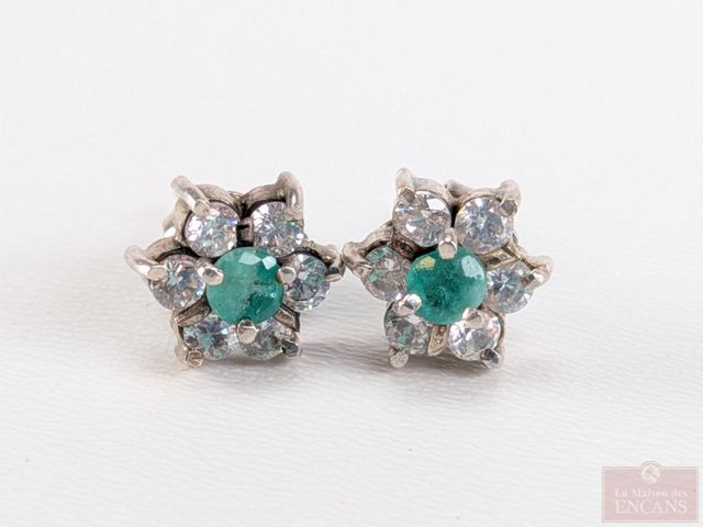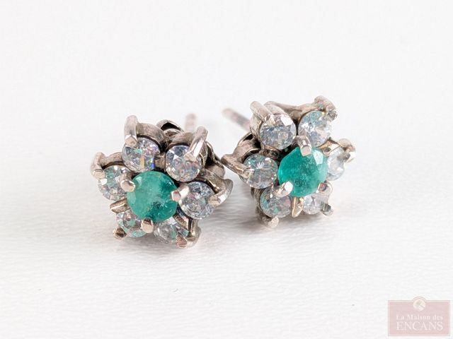 Lot # 205 - Paire de boucles d'oreilles en argent, serties d'émeraudes de Colombie et de multiples pierres SOLD