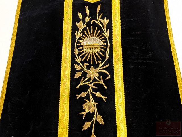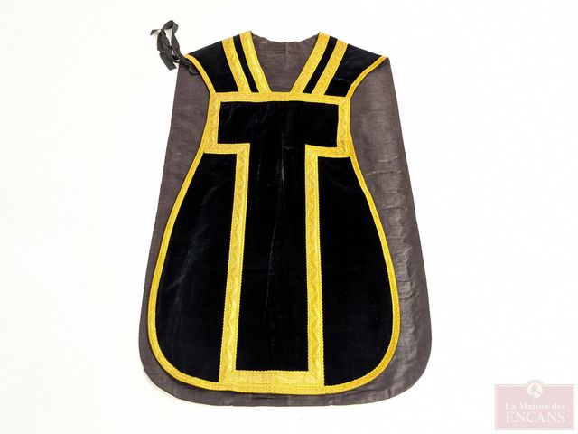 Lot # 127 - Ancien chasuble liturgique en velours avec fil d'or, avec manipule et étole SOLD