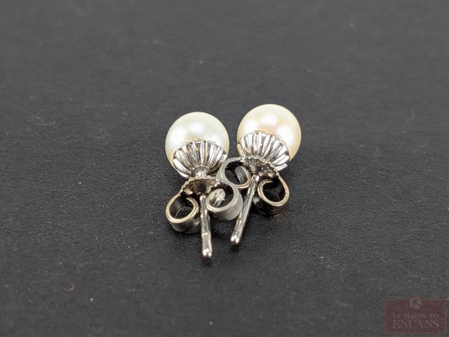 Lot # 219 - Paire de boucles d'oreilles en or blanc 10k avec perles SOLD