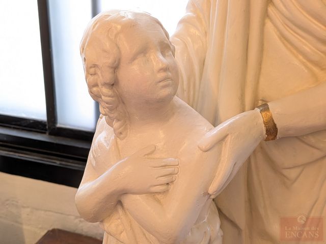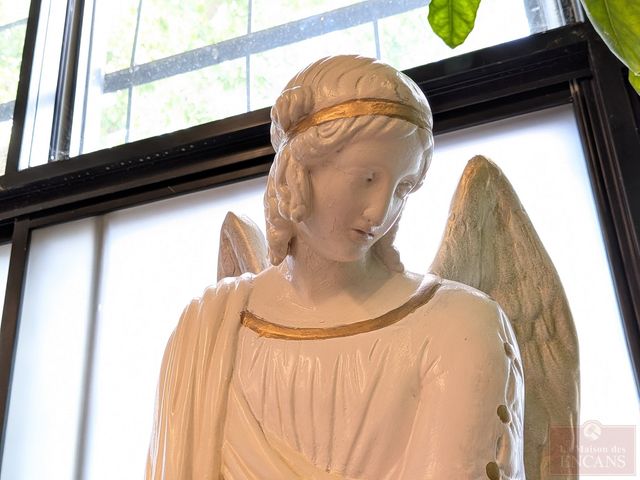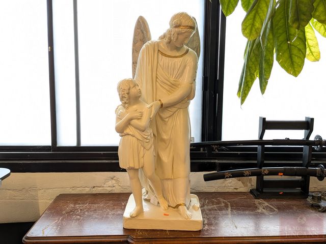 Lot # 143 - Statue en plâtre représentant un ange gardien, datant de la fin du 19eme siècle et mesurant 32 pouces de hauteur SOLD