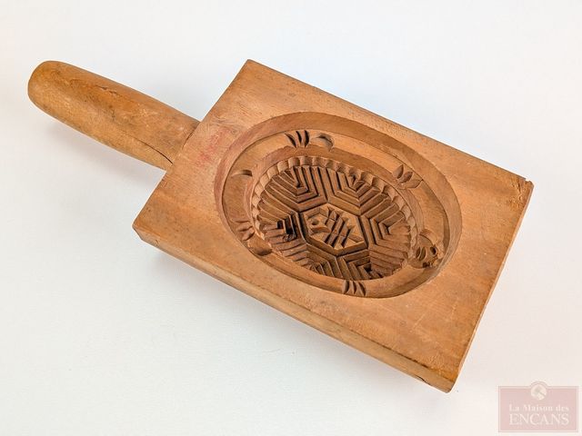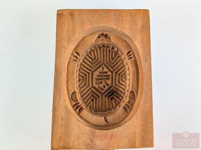 Lot # 221 - Ancien moule à beurre sculpté sur bois avec motifs de tortues, mesurant 8.5 pouces de longueur SOLD