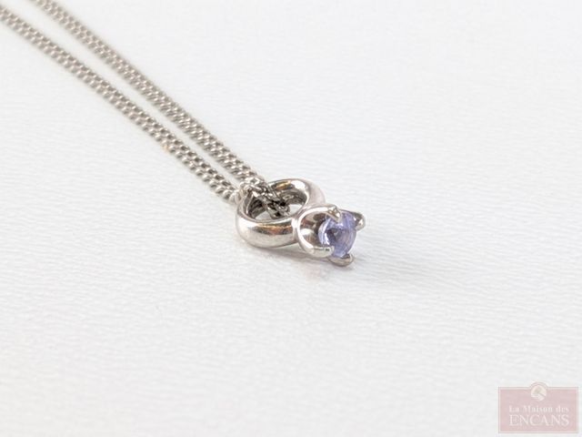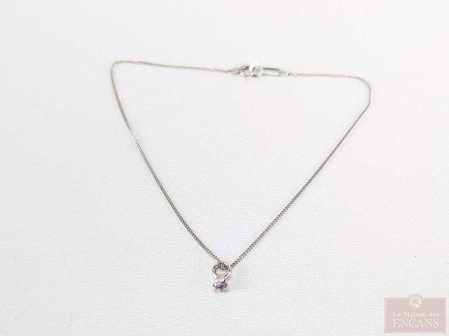 Lot # 194 - Chaine et pendentif en platine serti d'une pierre, la chaine mesurant 8 pouces de longueur SOLD