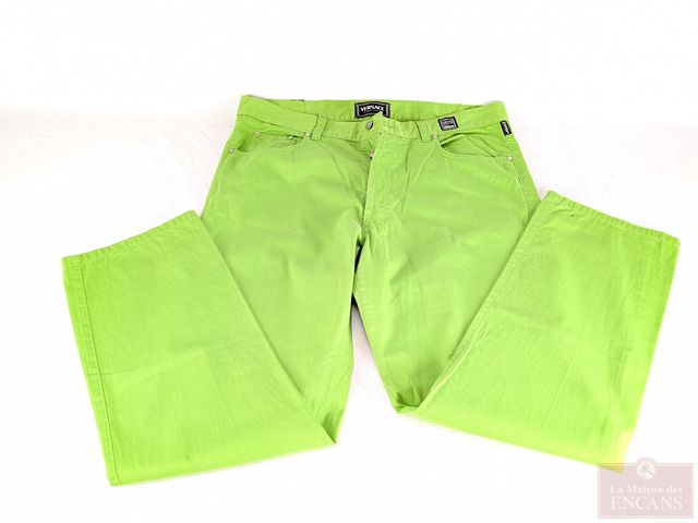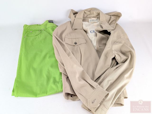 Veste Gucci vintage 100% coton, faite en Italie, datant des années 1990, taille 52, ainsi que paire de pantalons Versace Jeans Couture vintages, datant des années 1990, taille 40