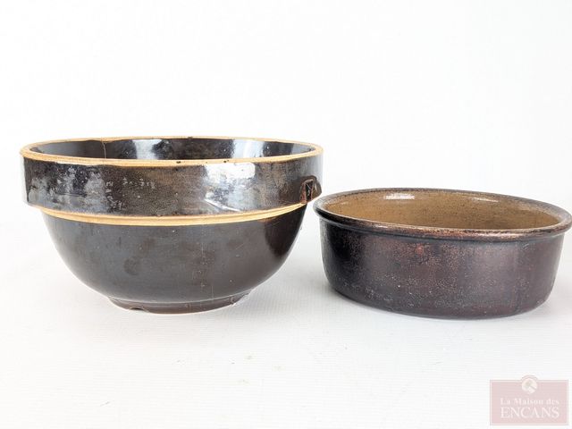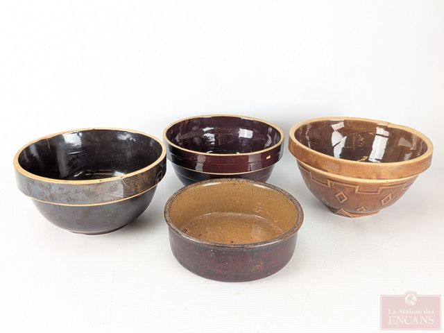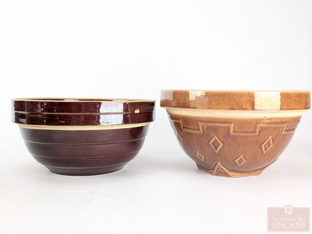 Lot # 189 - Lot d'anciens bols à mélanger en terre-cuite, dont un bol McCoy fait aux États-Unis, le plus grand mesurant 9 pouces de diamètre