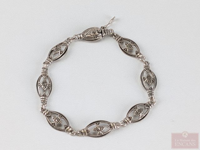 Lot # 236 - Bracelet en argent serti de marcassites, mesurant 7 pouces de longueur