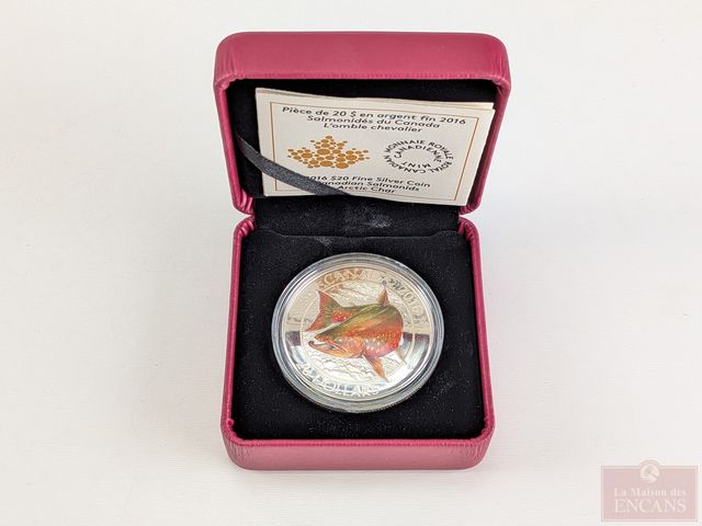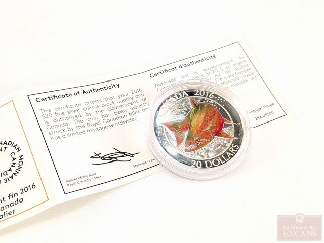 Pièce canadienne d'une once d'argent pur 9999 vingt dollars 2016 L'ongle chevalier, encapsulée, dans sa boite avec certificat, sans taxes
