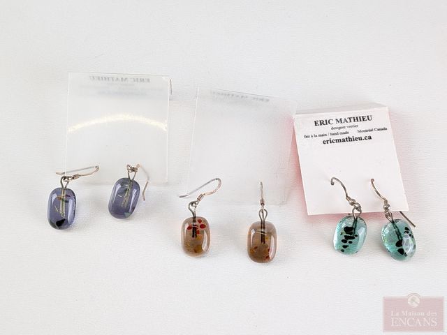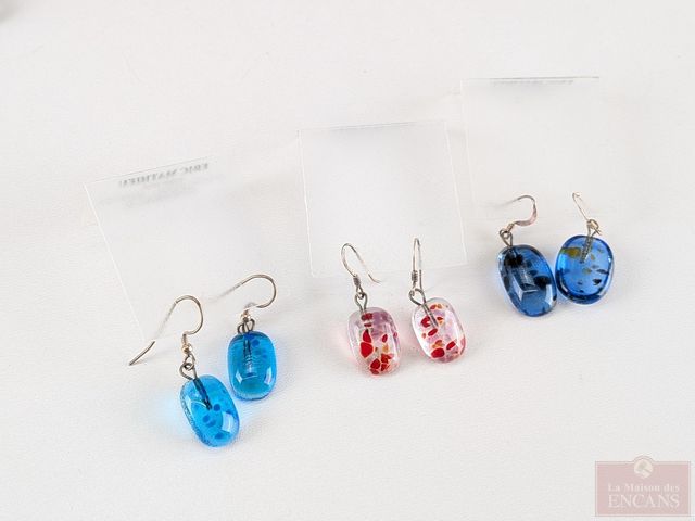 Lot de paires de boucles d'oreilles en verre soufflé, faites par Éric Mathieu