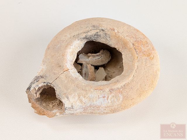 Lot # 132 - Lampe à l'huile antique en terre-cuite, datant de l'époque romaine et mesurant 3 pouces de largeur