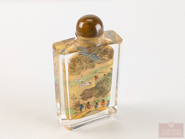 Lot # 221 - Bouteille à priser en cristal peinte à la main de l'intérieur, mesurant 3 pouces de hauteur