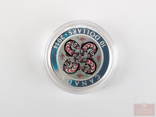 Pièce canadienne de dix dollars 2014 en argent pur 9999, encapsulée, dans sa boite avec certificat, sans taxes
