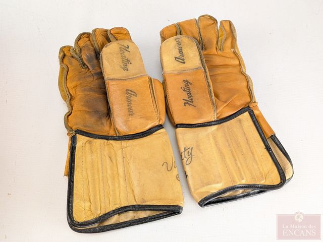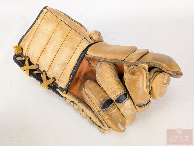 Lot # 174 - Deux paires de gants de hockey vintages en cuir, faits au Canada