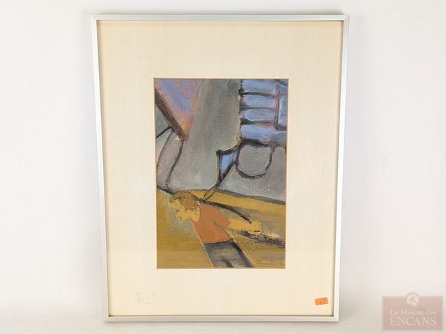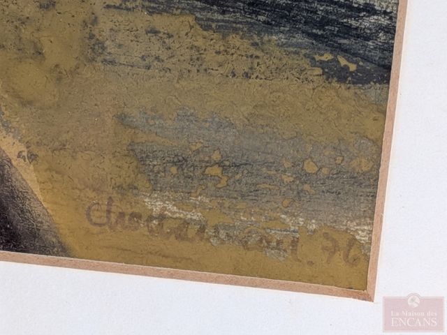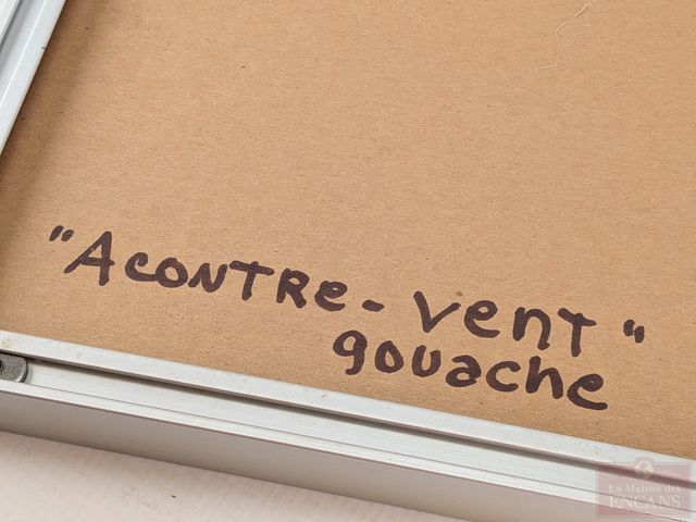 Lot # 56 - Gouache sur papier signée, mesurant 11x8 pouces et titrée À contre vent