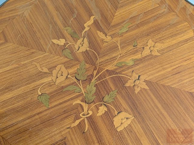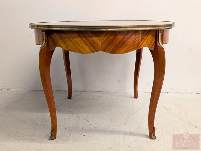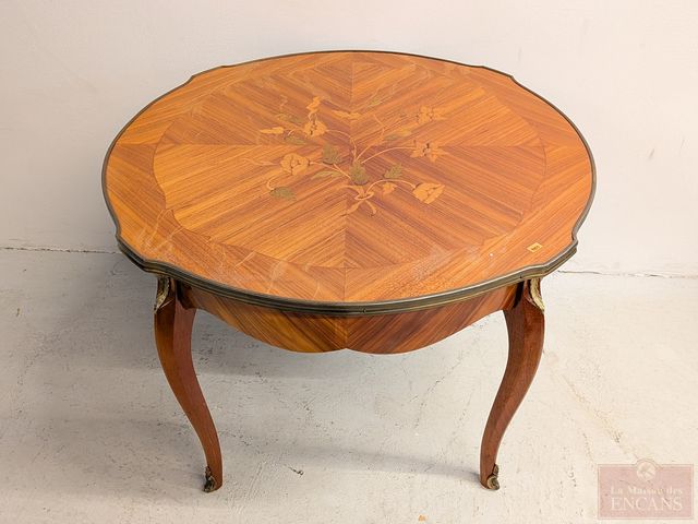 Lot # 239 - Table-basse en bois et laiton marqueté, mesurant 28 pouces de diamètre