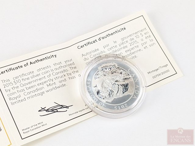 Lot # 162 - Pièce canadienne de dix dollars 2015 en argent pur 9999, dans sa boite avec certificat, sans taxes
