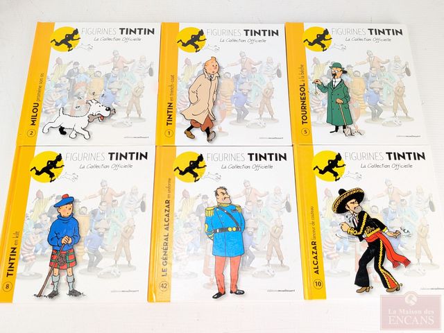 Lot de figurines de collection Tintin avec leurs livres, les figurines mesurant 6 pouces de hauteur