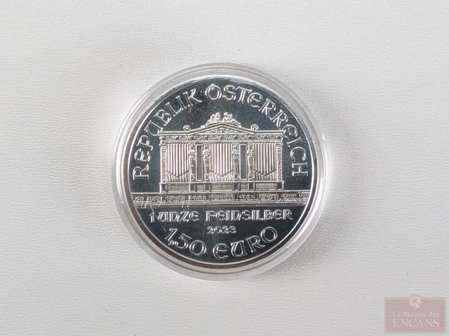 Pièce autrichienne d'un point cinq euros une once d'argent pur 2023, encapsulée, sans taxes