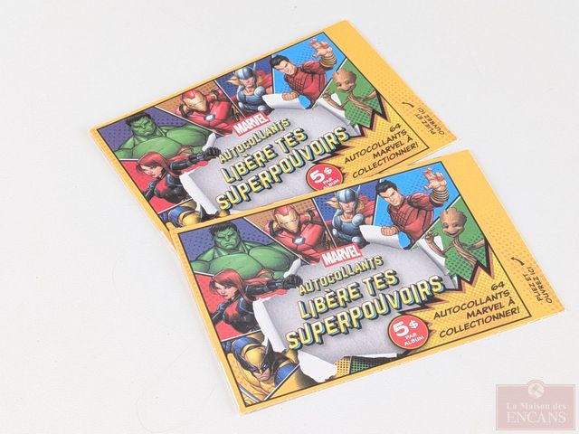 Boite de paquets d'autocollants de collection Marvel - Libère tes superpouvoirs, contenant 100 paquets neufs