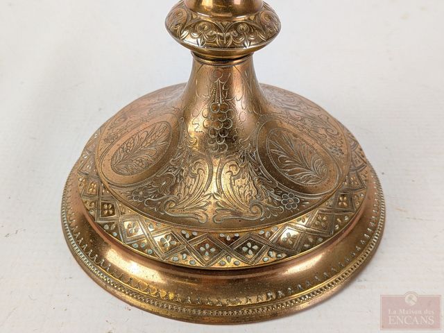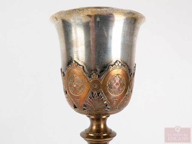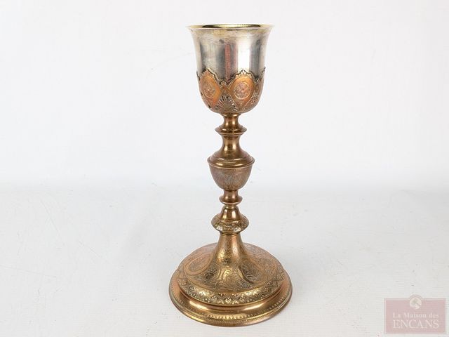 Lot # 65 - Calice avec coupe en argent, intérieur en vermeil, et pied en cuivre, datant du 19eme siècle et mesurant 11.5 pouces de hauteur