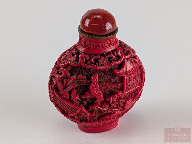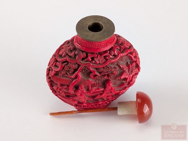 Bouteille à priser orientale gravée, mesurant 2.5 pouces de hauteur