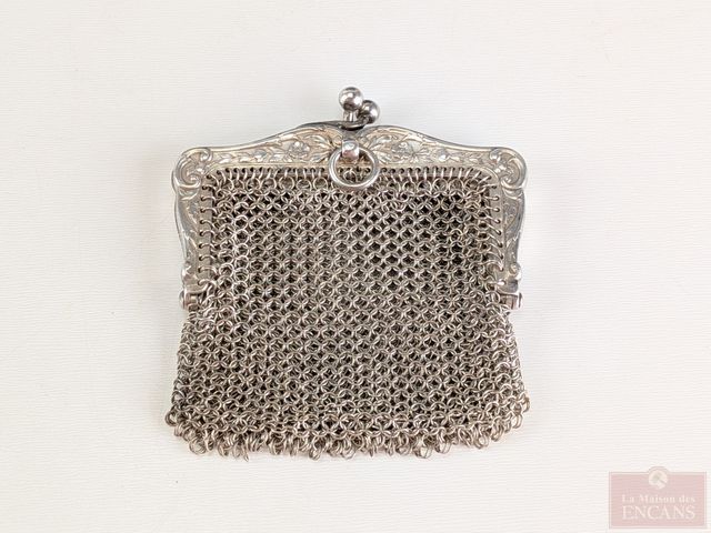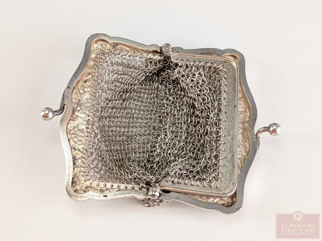Lot # 95 - Aumonière de style art-nouveau en cotte de mailles avec compartiments doubles, mesurant 2.5 pouces de hauteur
