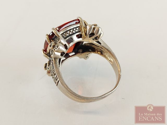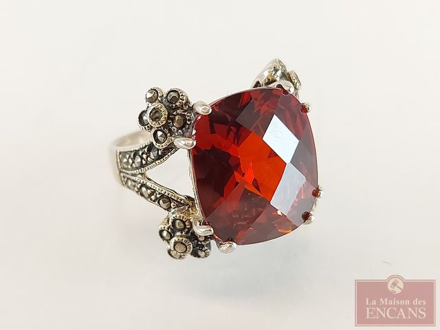 Lot # 212 - Bague en argent sertie de multiples pierres dont marcassites - taille 6 SOLD