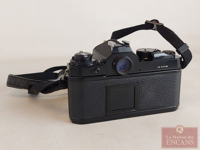 Caméra argentique Nikon FE Reflex 35 mm - avec lentille Nikkor 50 mm F2 - une lentille Nikkor 35-105 mm - avec accessoires - fonctionnelle (deux lignes noires dans le viseur n'affectant pas le focus ni l'image)