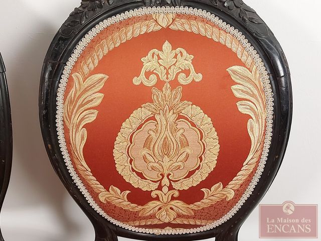 Lot # 67 - Paire de chaises de style victorien avec tissus jacquard - mesurant 37x19x17 pouces SOLD