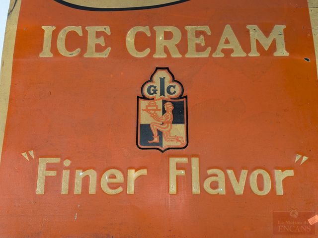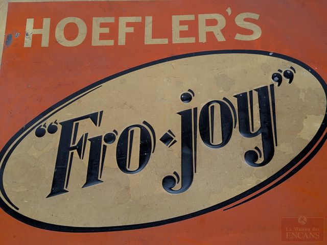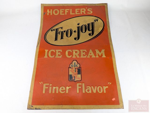Lot # 18 - Ancienne affiche publicitaire Hoefler's FroJoy Ice Cream Finer Flavor en métal, mesurant 26x25 pouces