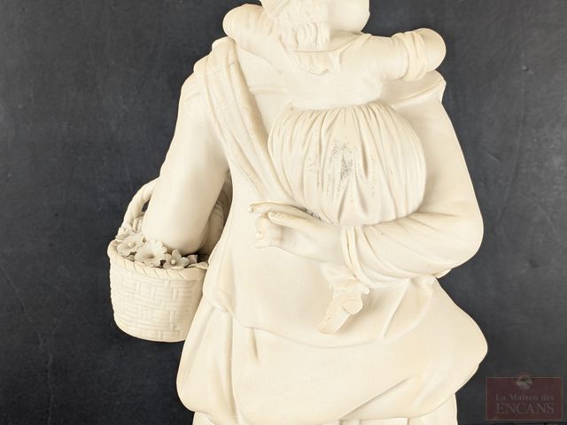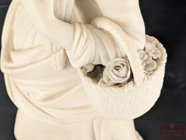 Porcelaine biscuit La dame aux fleurs, mesurant 16 pouces de hauteur