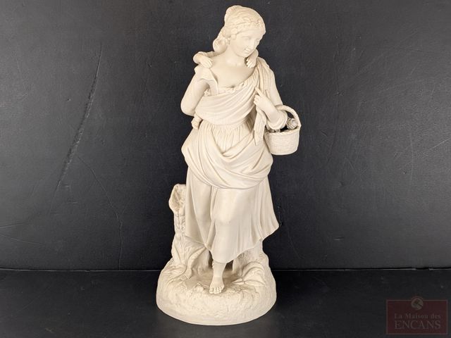 Lot # 31 - Porcelaine biscuit La dame aux fleurs, mesurant 16 pouces de hauteur