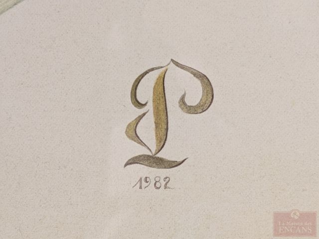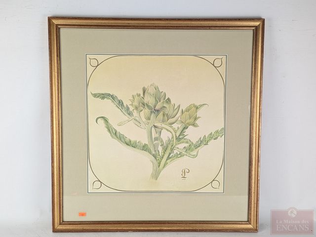 Lot # 134 - Aquarelle sur papier signée, datant de 1982 et mesurant 15x15 pouces, dans un encadrement doré à la feuille d'or