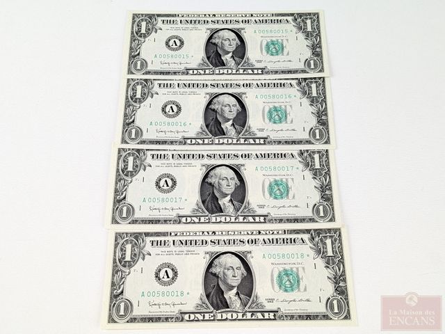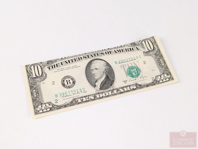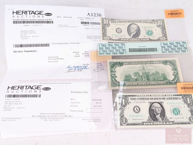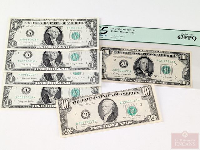 Lot # 187 - Lot de billets américains comprenant billet d'un dollar 1963, billet de dix dollars 1981 et billet cent dollars 1950 série C