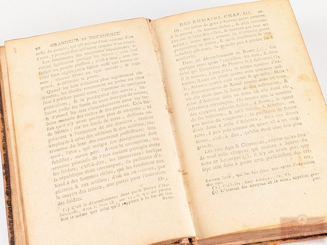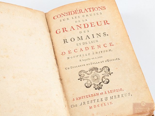 Lot # 220 - Livre ancien Considérations sur les causes de la grandeur des romains et de leur décadence, édité à Amsterdam et à Leipzig en 1759 et mesurant 6.5x4 pouces