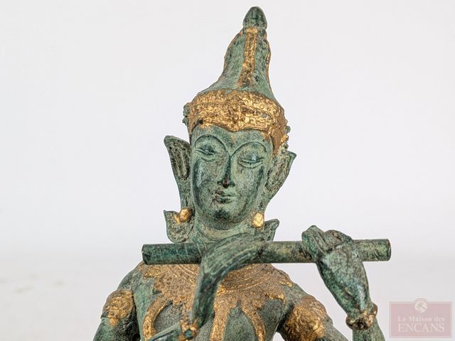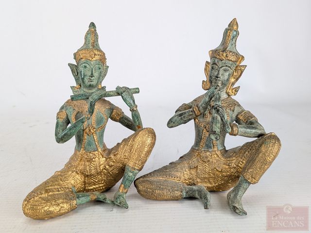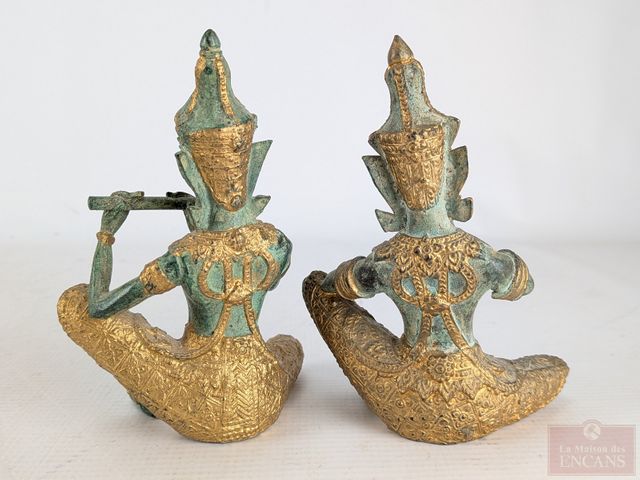 Deux statuettes en bronze représentant des divinités thaïlandaises et mesurant 6 pouces de hauteur chacune