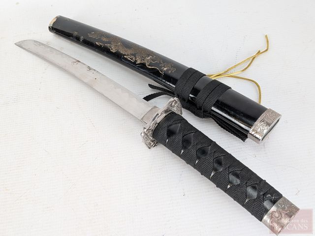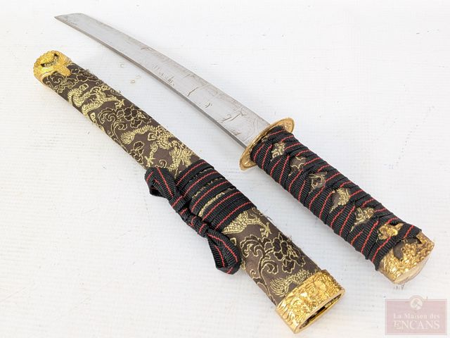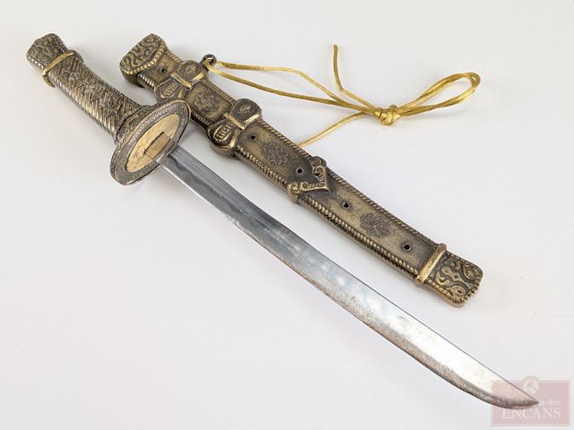 Deux sabres courts et une dague avec fourreau en laiton, le plus grand mesurant 19 pouces de longueur au total