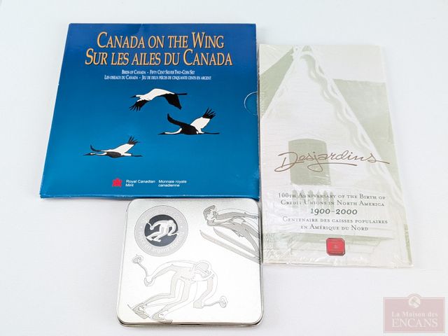 Lot numismatique canadien comprenant pièces en argent sterling, dont pièces de cinquante sous 1995, 1998 et 2000