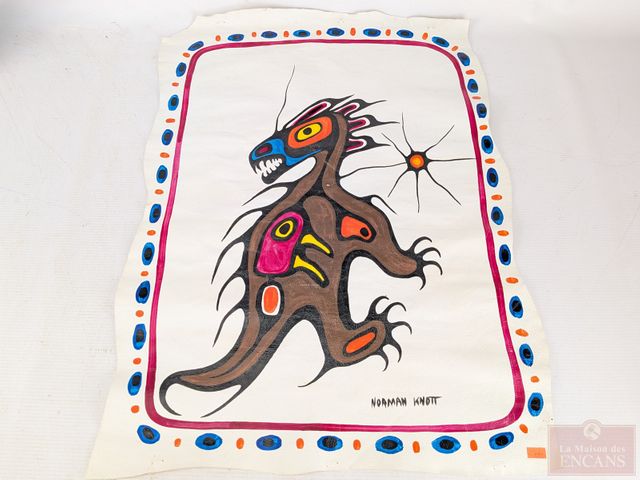 Lot # 218 - Norman KNOTT- Peinture sur cuir haïda, signée et mesurant 24x18 pouces