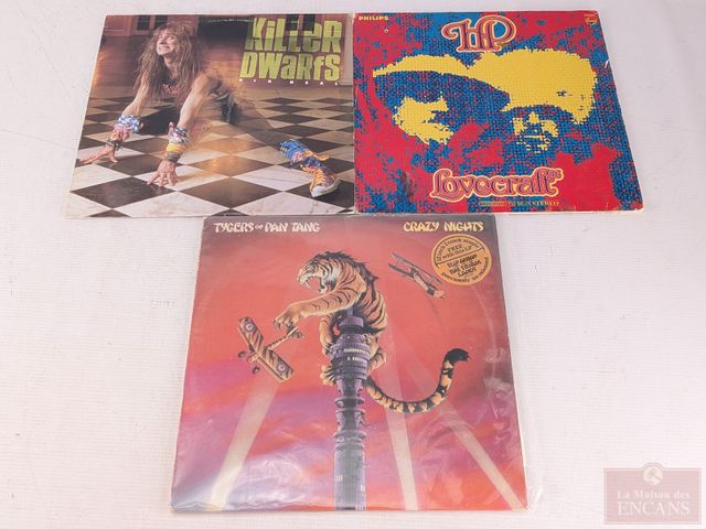 Lot de disques vinyles trente-trois tours, dont Mayhem, H.P Lovecraft, Killer Dwarves, Gwar - disques comme neuf
