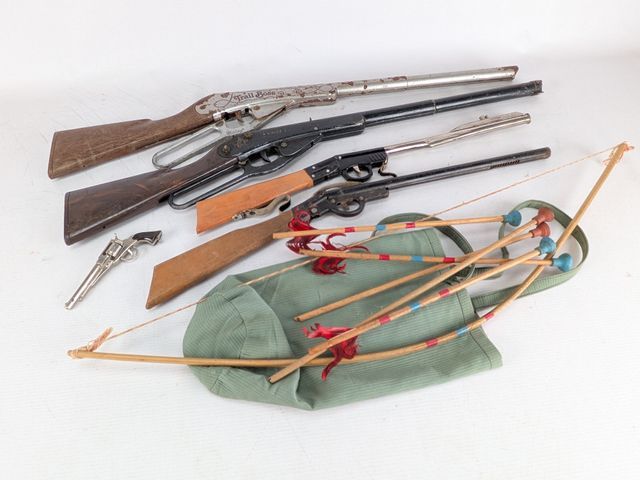 Lot # 239 - Lot de carabines à air comprimé, dont Daisy, ainsi que pistolet à pétard Victory et autres, la plus grande carabine mesurant 30 pouces de longueur