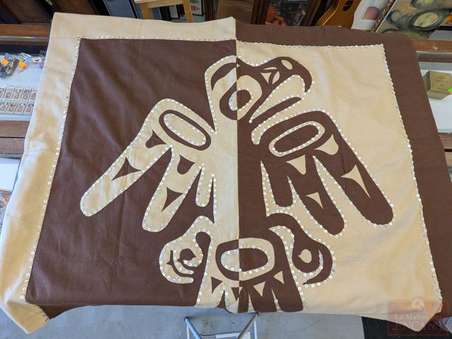 Lot # 55 - Paul JOHNNY - Couverture amérindienne haïda avec boutons de nacre de perle, faite à la main et mesurant 71x59 pouces
