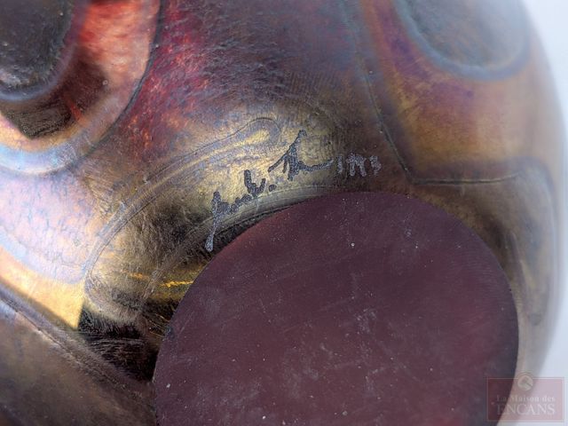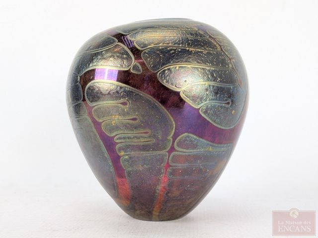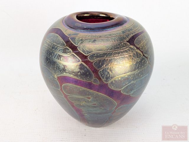 Lot # 76 - Vase en verre irisé, signé et mesurant 6 pouces